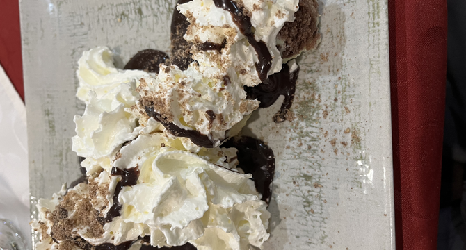 img_0867.jpegSajnos a csokoládé csak diszként szolgált, nem volt valódi része a desszertnek, mint a zöld levelek a tetején, igy erről nem tudok nyilatkozni.